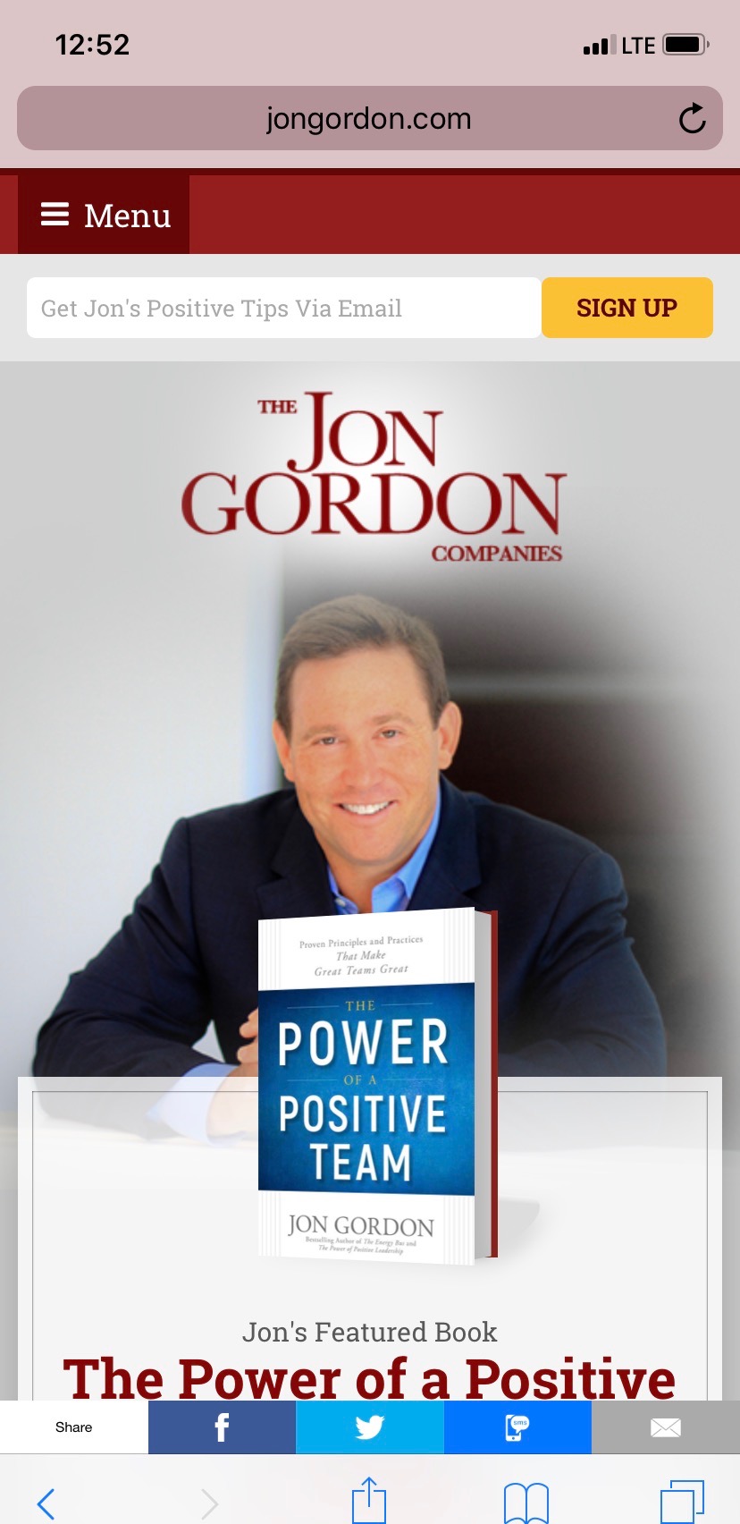 I selected Jon Gordon, author and expert on leadership, culture and teamwork. While the content of the site is well done and user friendly the site would have limitations for those with any type of disability. Even those without a disability could have some issues depending on what type of device they were using.